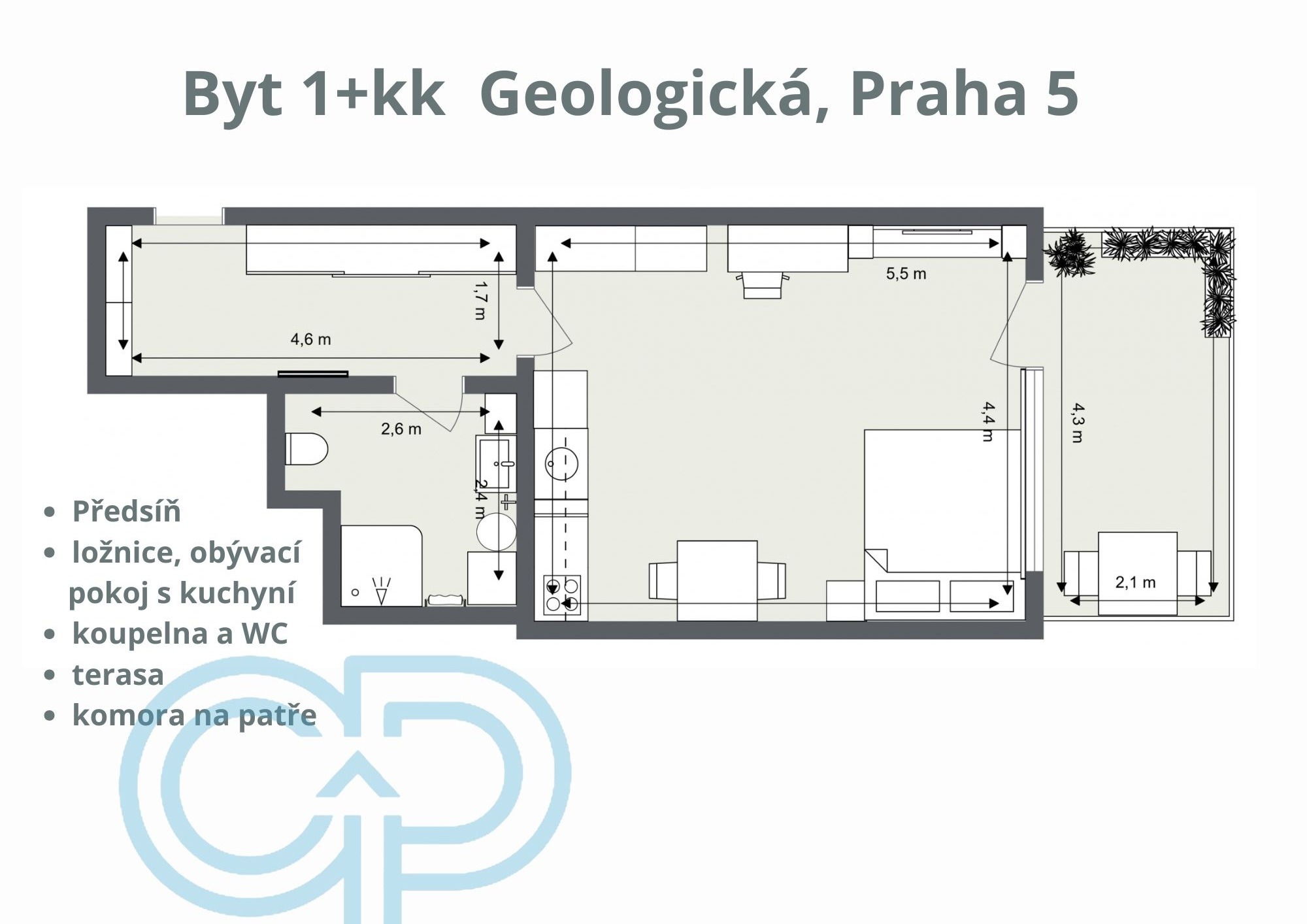 Byt 1+kk (39,6 m2) s předzahrádkou a komorou na patře - v srdci pražského Barrandova!