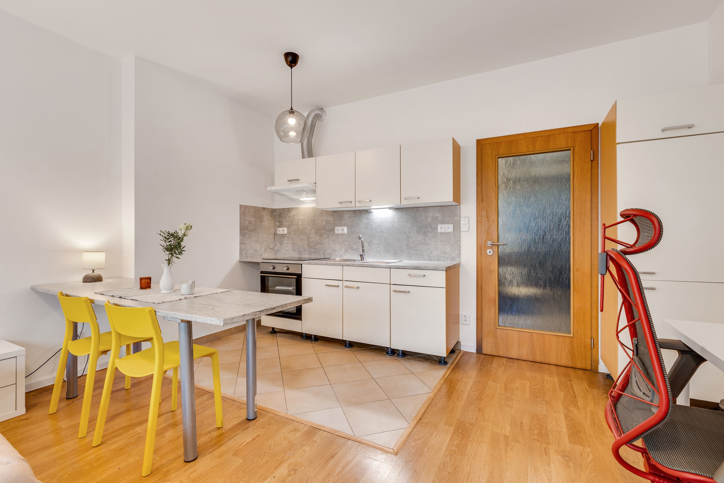 Tento byt vás překvapí svou atmosférou hned při první návštěvě. Jeho hlavním kouzlem je propojení interiéru s venkovním prostorem. Z obytné místnosti můžete vstoupit přímo na terasu s vlastní zahrádkou, která vytváří tiché, zelené útočiště uprostřed města. Ideální místo na ranní kávu, večerní sklenku vína, drobné zahradničení a odpočinek na čerstvém vzduchu.