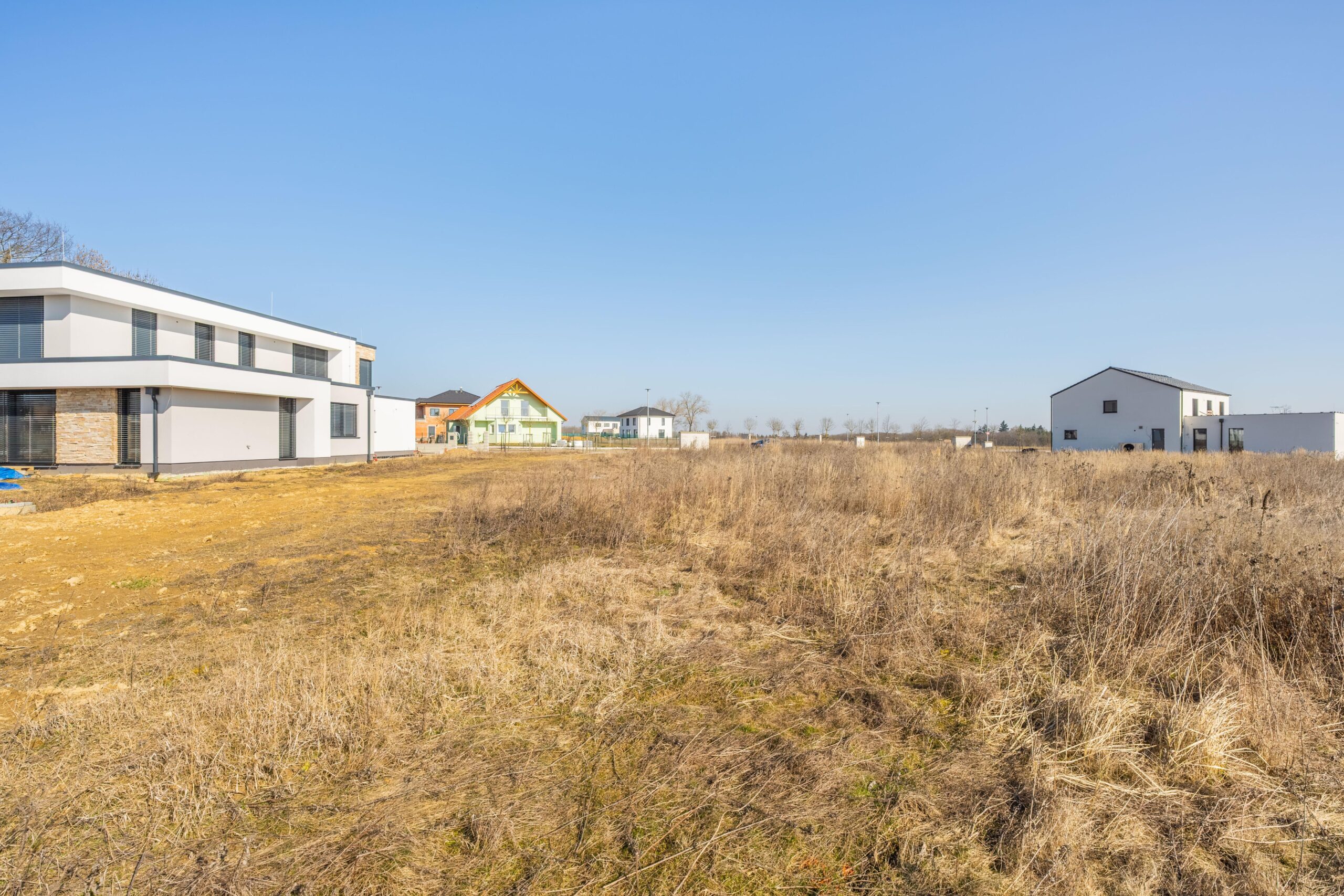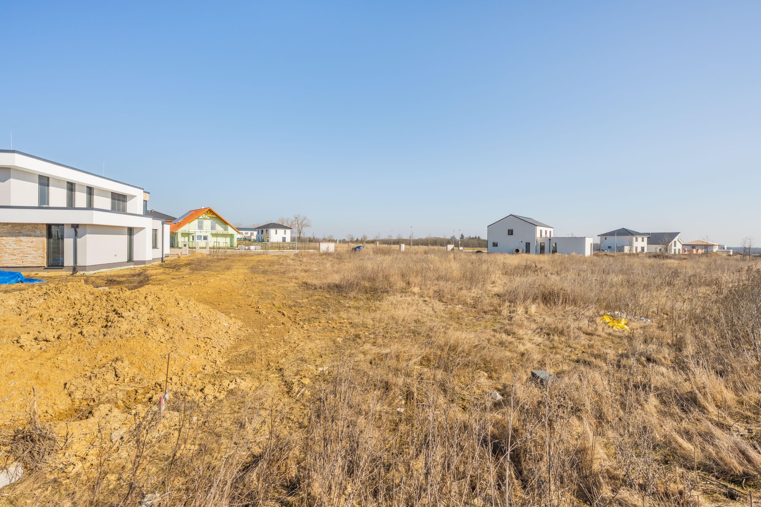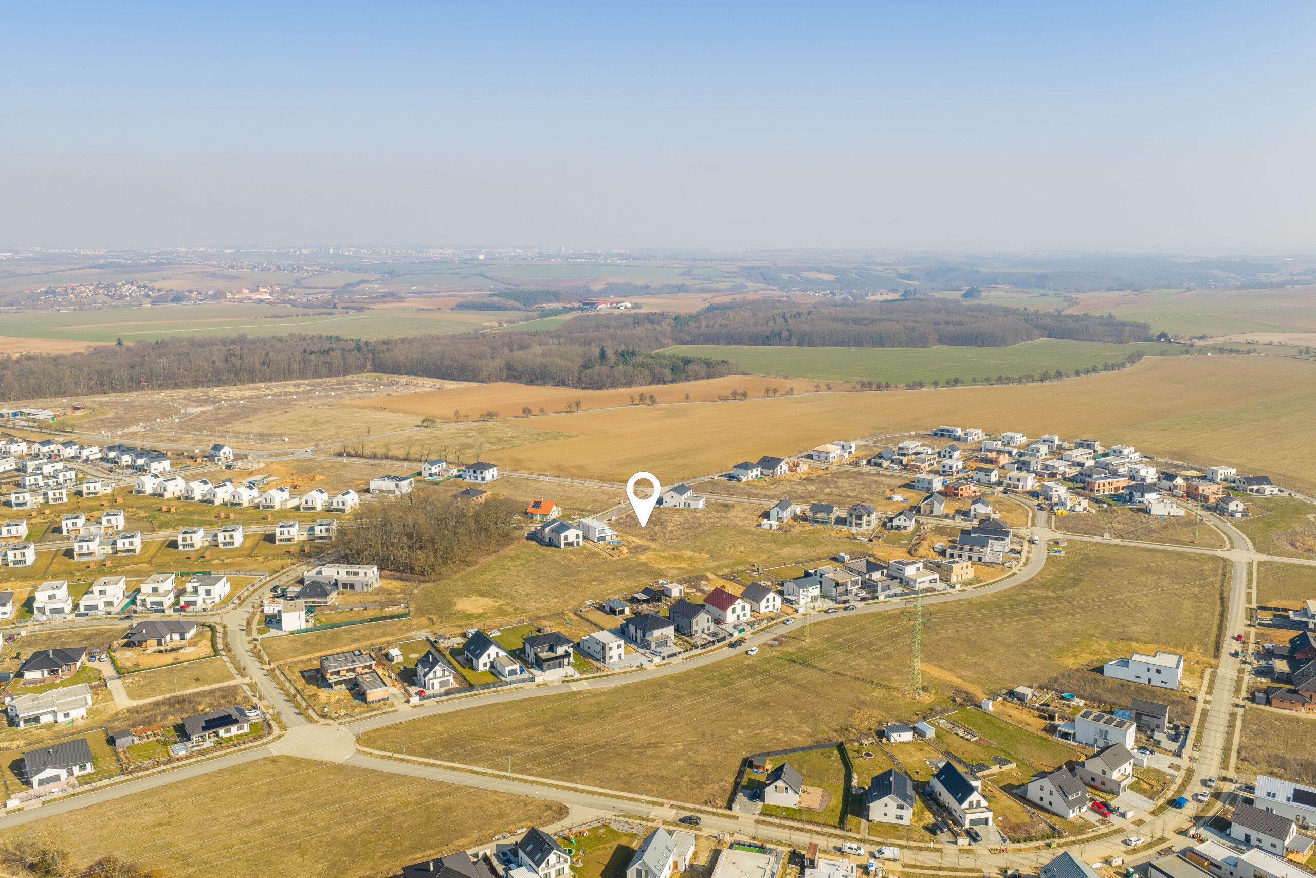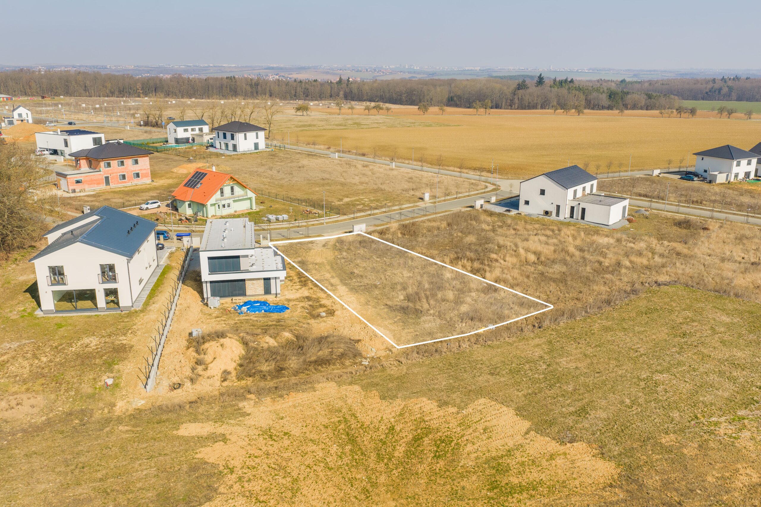 – navazuje na zelený pás, pozemek tak nabízí nádherný otevřený výhled do kraje a máte pouze dva sousedy