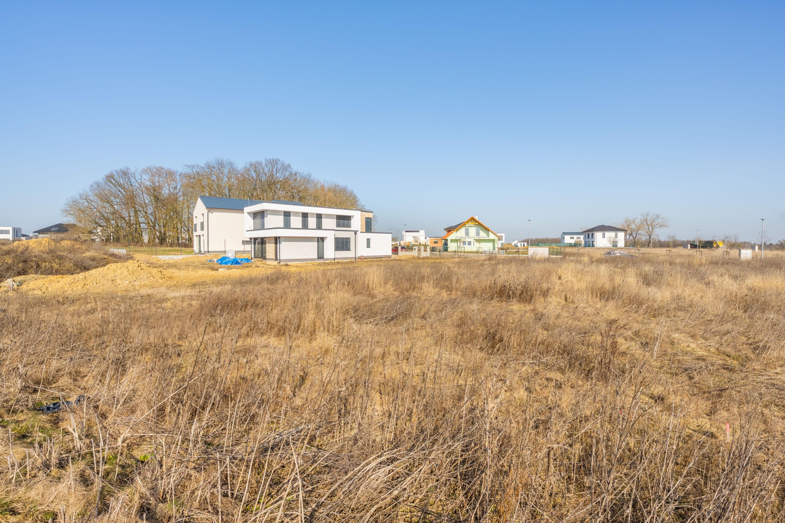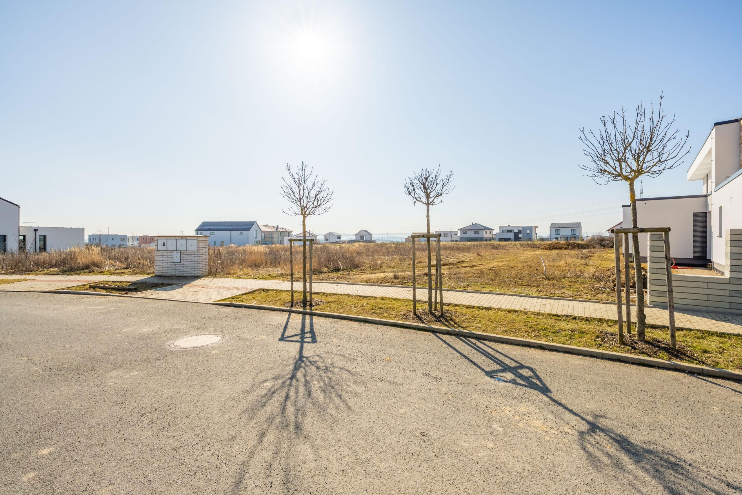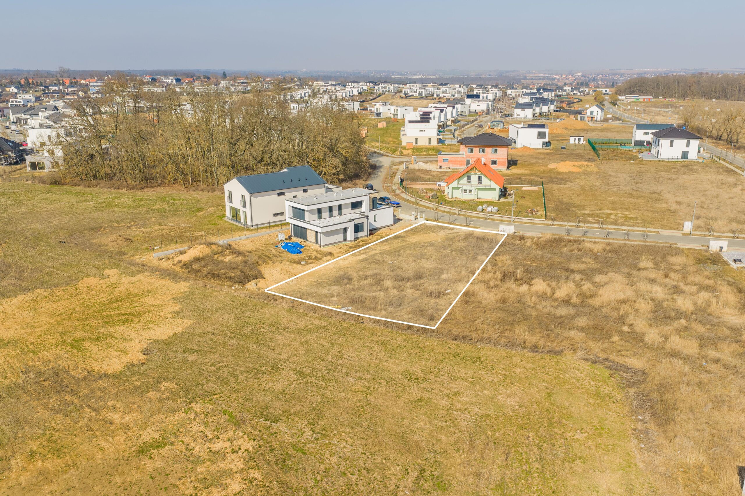 – navazuje na zelený pás, pozemek tak nabízí nádherný otevřený výhled do kraje a máte pouze dva sousedy