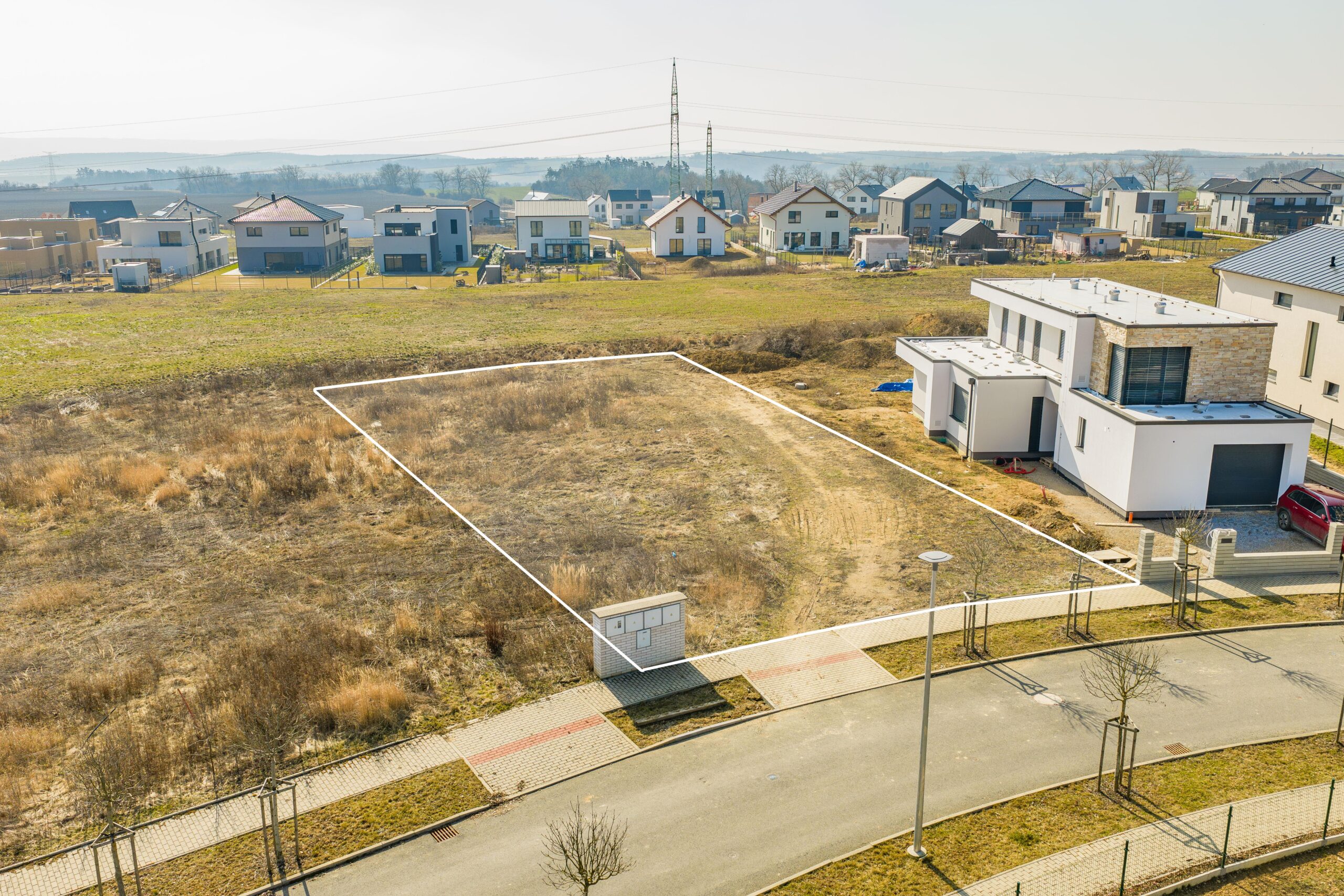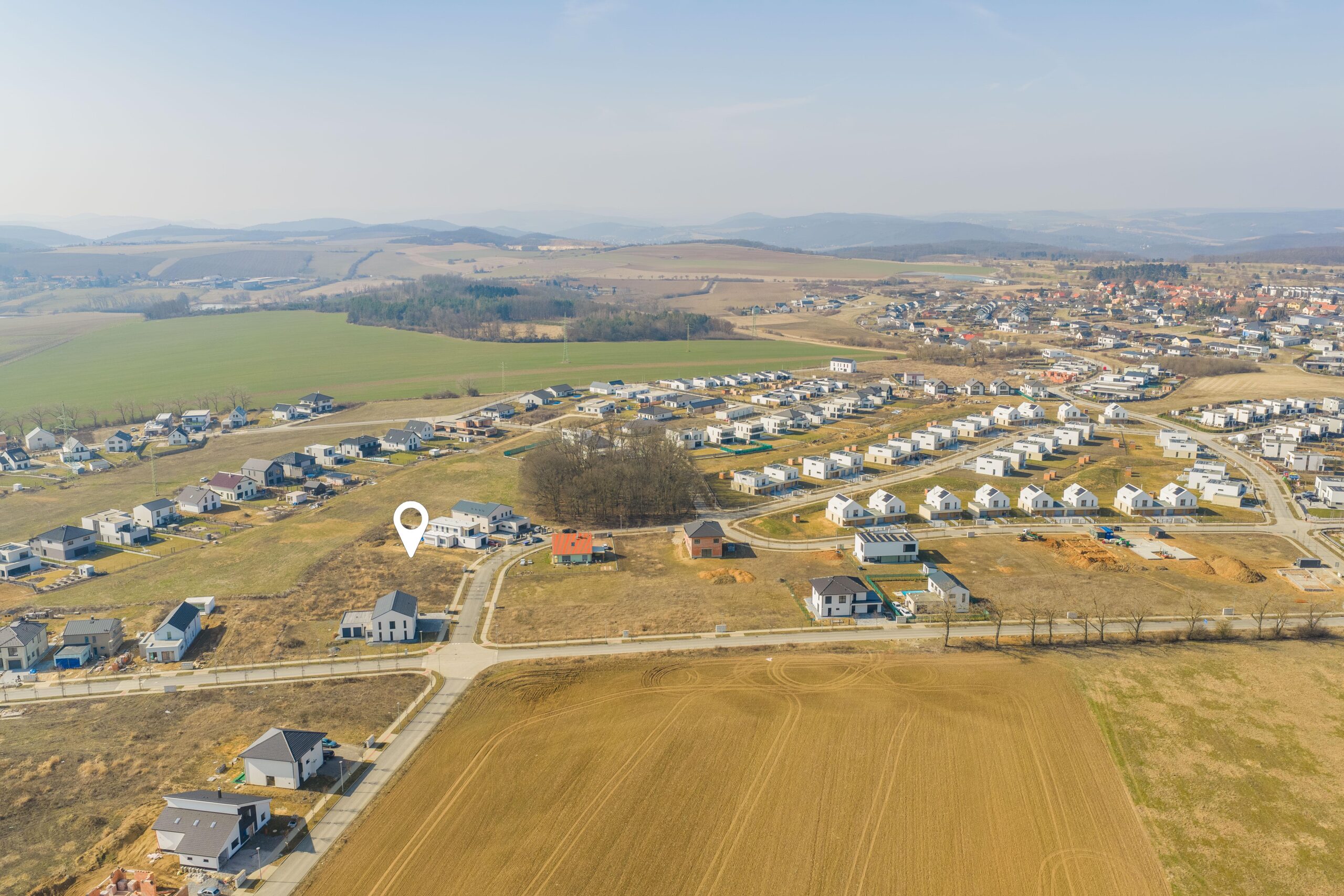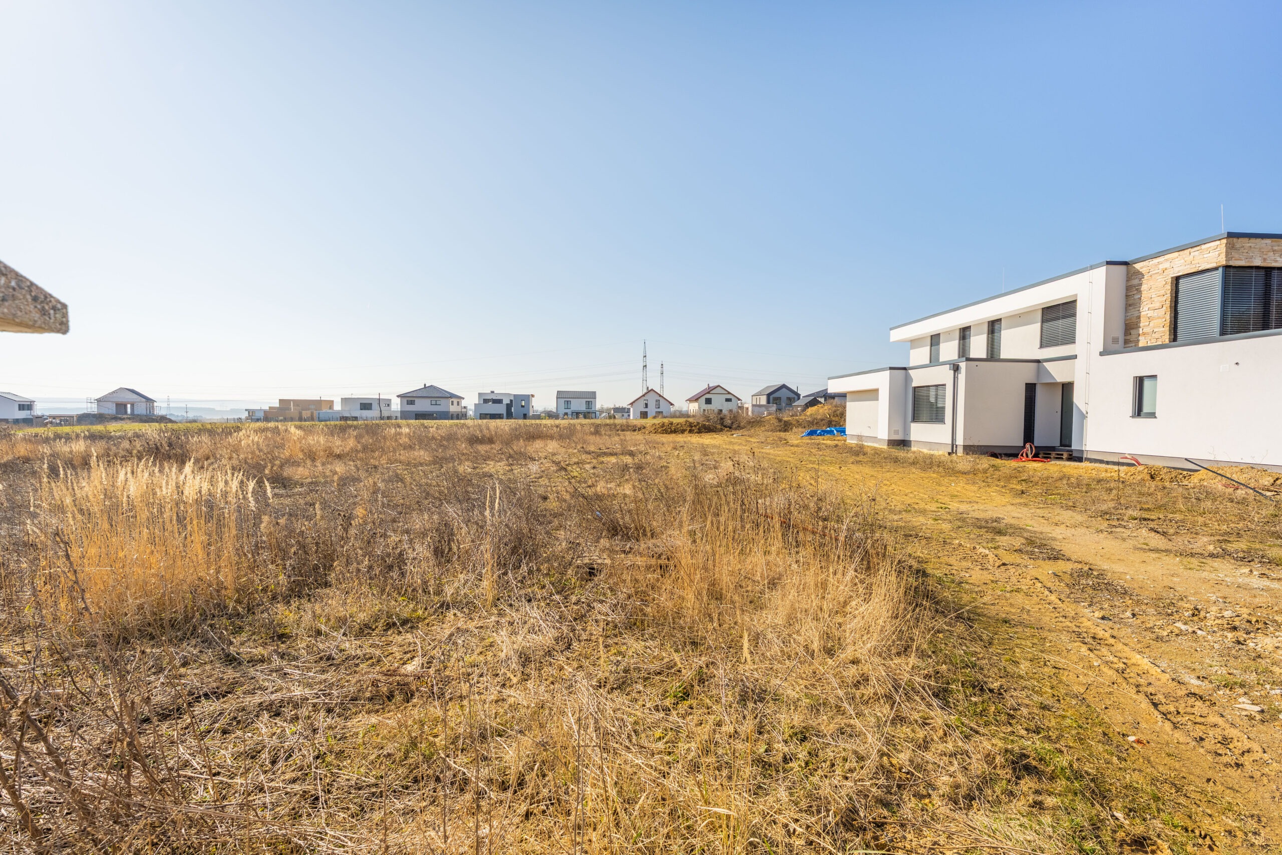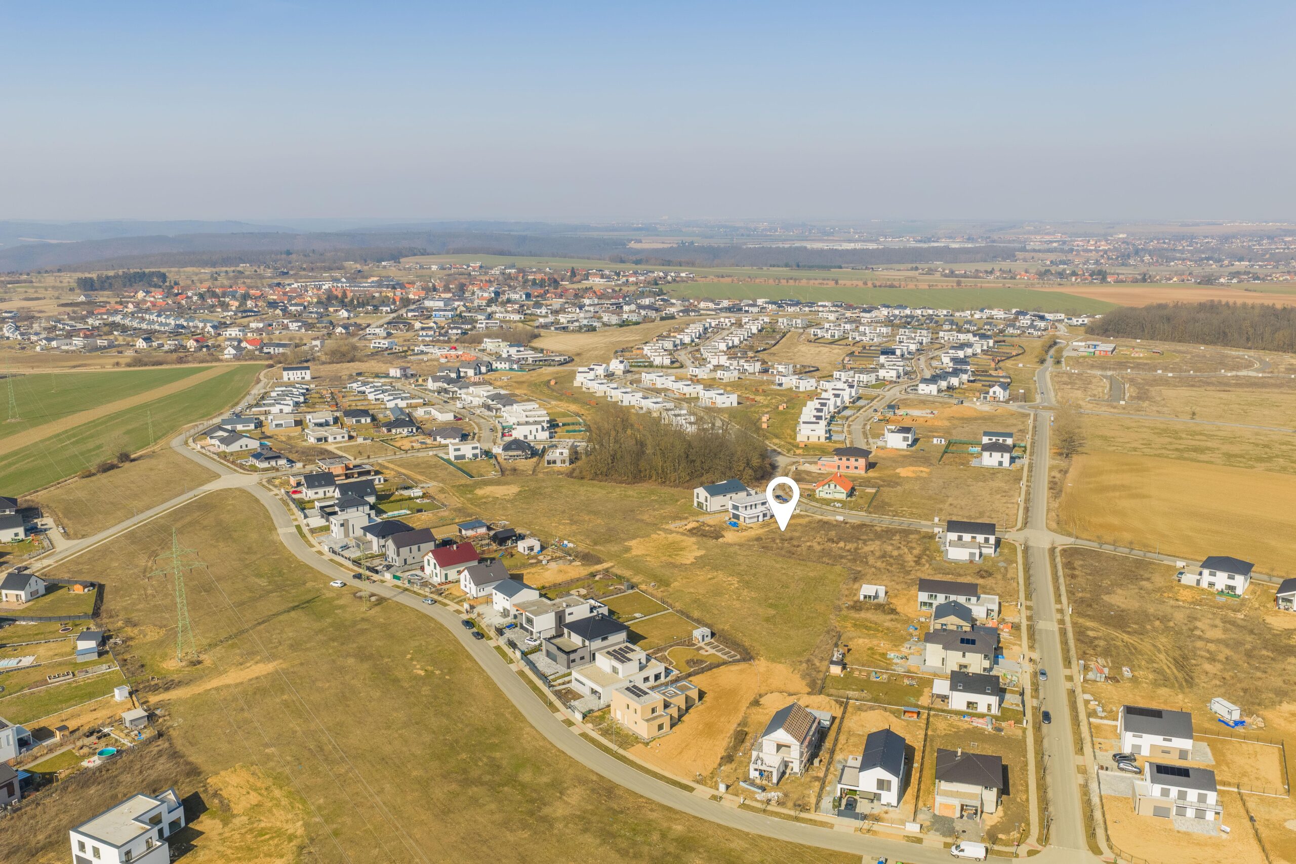 – navazuje na zelený pás, pozemek tak nabízí nádherný otevřený výhled do kraje a máte pouze dva sousedy