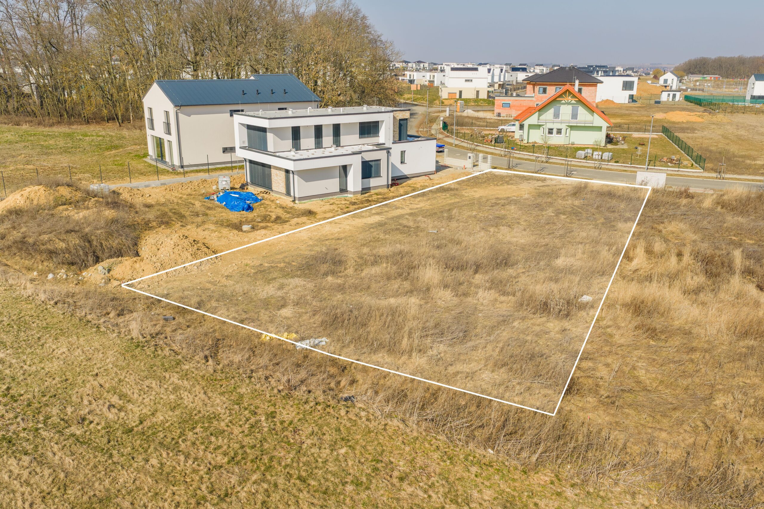 Součástí ceny je kromě stavebního povolení také možnost využít zpracovanou projektovou dokumentaci na velkorysý moderní rodinný dům 6+kk s garáží. Projekt vznikal individuálně tak, aby využil maximální potenciál této parcely.